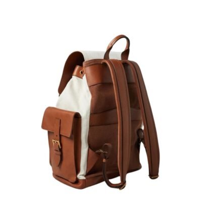 BRUNELLO CUCINELLI COTTON AND LINEN CAVALRY AND CALFSKIN CITY BACKPACK