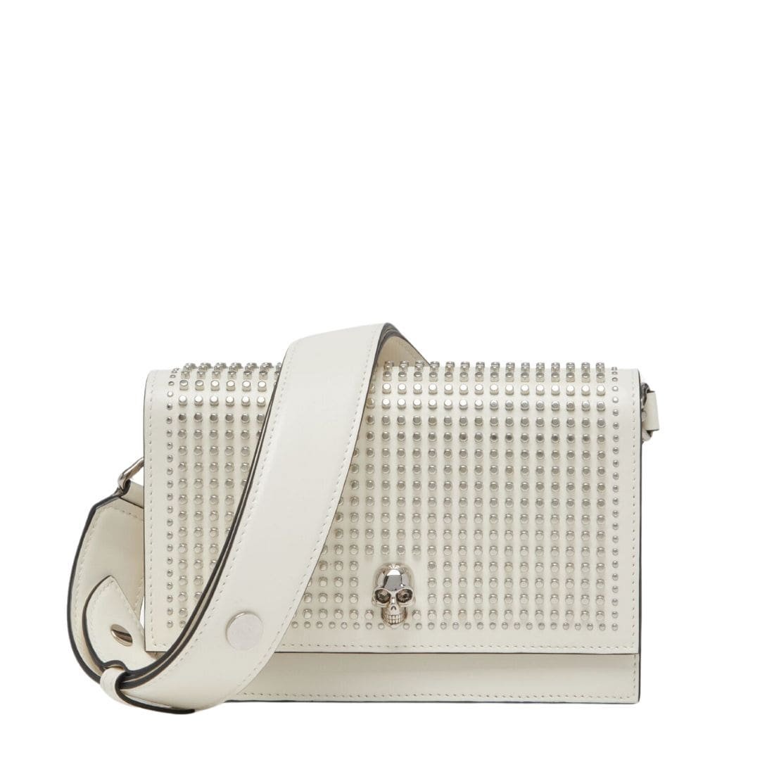 ALEXANDER MCQUEEN WOMEN’S THE BIKER SMALL SKULL BAG IN SOFT IVORY