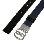 At its core, the belt features genuine leather, renowned for its durability and luxurious texture. The juxtaposition of black and blue hues adds a contemporary flair, ensuring it effortlessly complements a range of outfits, from formal ensembles to casual attire.