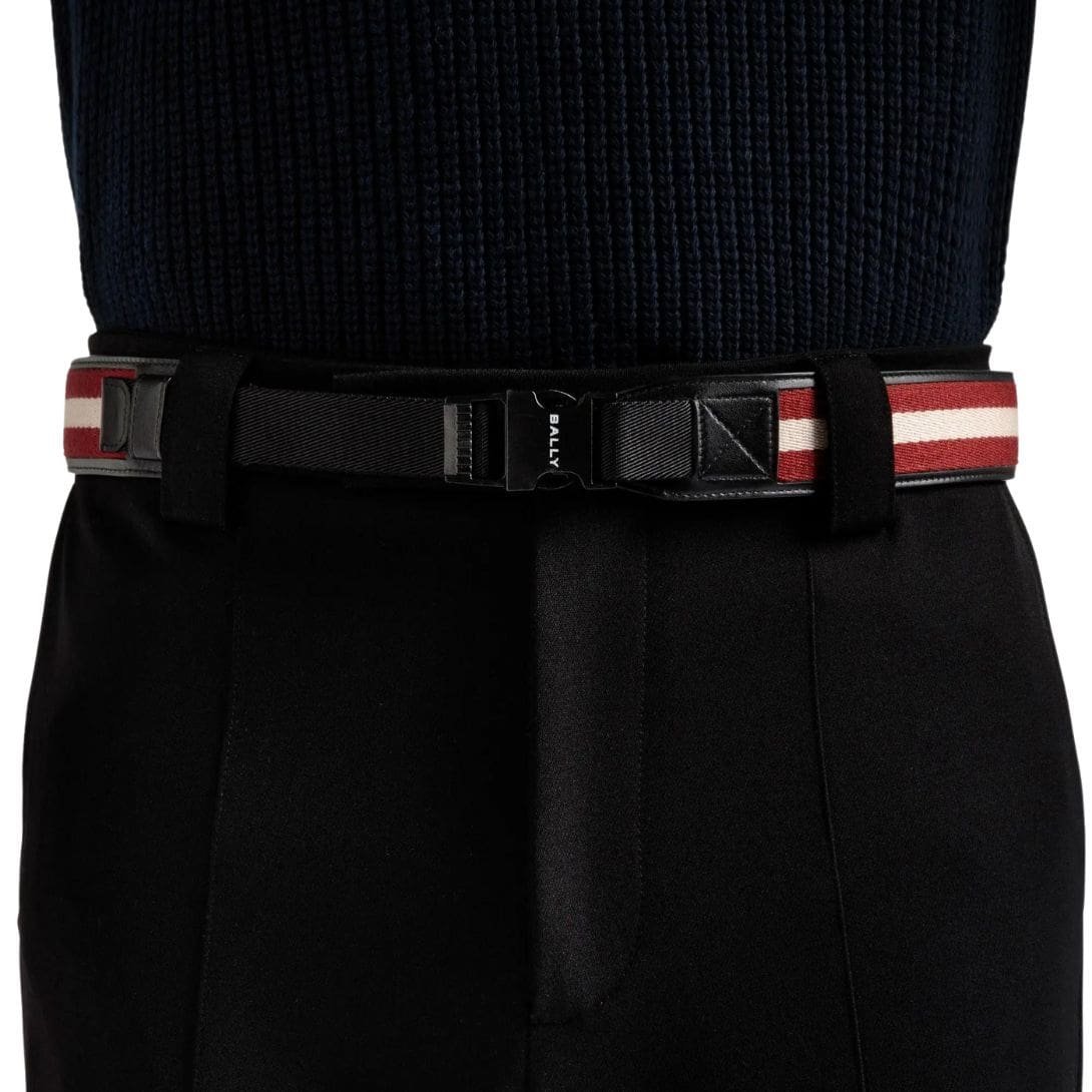BALLY TOBYN 40MM BELT IN RED,WHITE AND BLACK FABRIC AND LEATHER