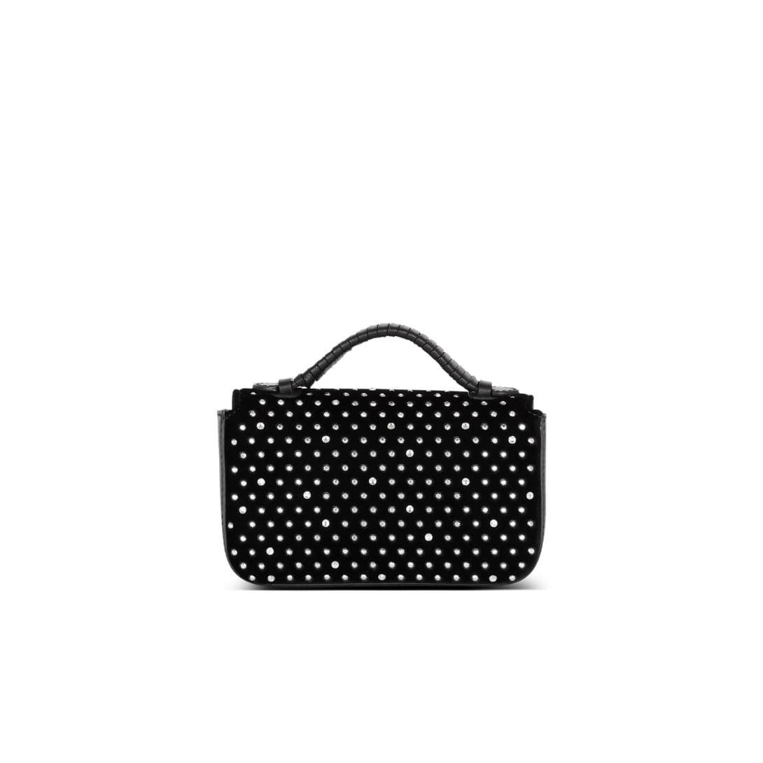 BALMAIN B-BUZZ MINI VELVET AND CRYSTAL BAG