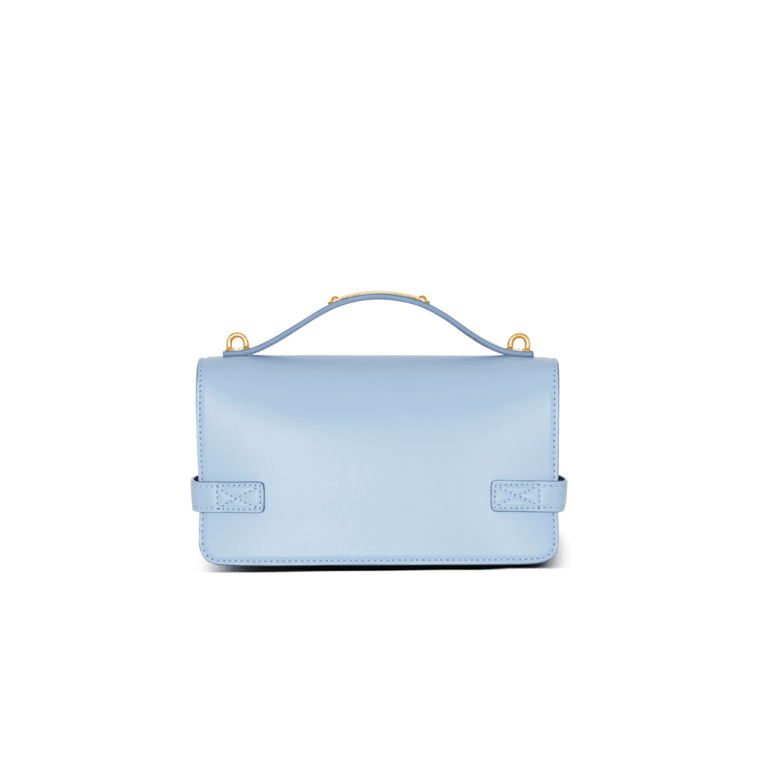Crafted from exquisite 100% calfskin leather, this bag boasts a sleek silhouette accentuated by golden hardware, exuding sophistication at every angle. The leather handle, adorned with a Balmain-engraved plaque, allows for effortless hand-carrying, while the adjustable and removable leather shoulder strap, featuring snap hooks, provides added convenience for shoulder or cross-body wear.