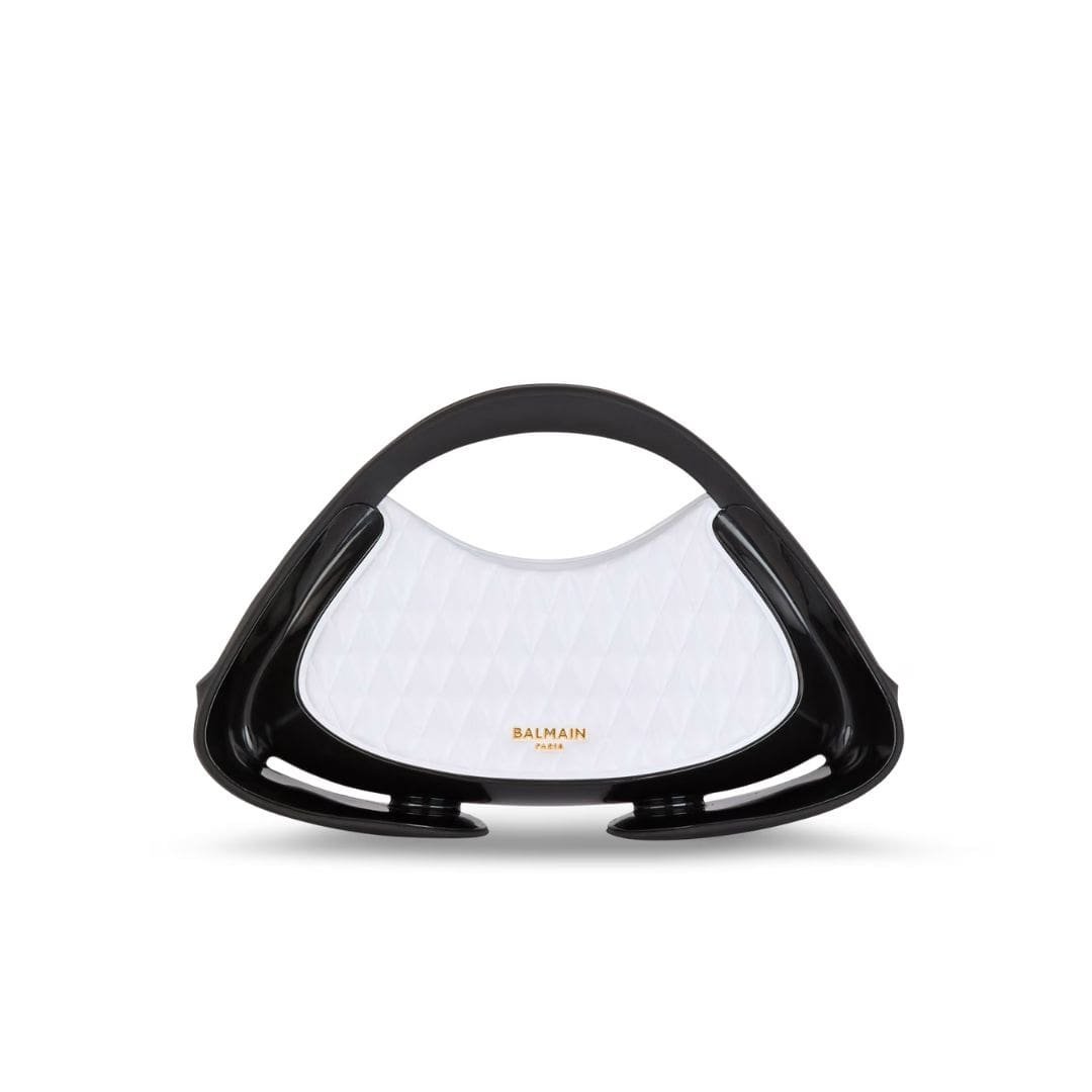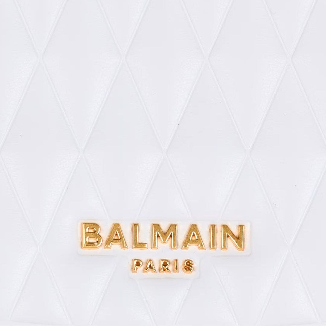 At first glance, the bag captivates with its pristine white hue, evoking a sense of purity and modernity. The smooth, supple leather exterior is impeccably crafted, reflecting Balmain’s commitment to quality craftsmanship. The minimalist silhouette is adorned with subtle yet striking accents, such as the iconic Balmain embossed logo discreetly placed on the front flap, adding a touch of understated glamour.