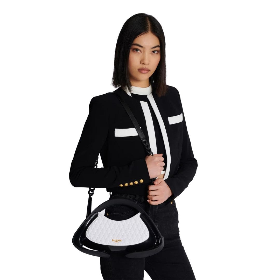 Carrying the Balmain Jolie Madame Medium Bag is a statement of refined taste and discerning style. The adjustable leather shoulder strap allows for comfortable wear, whether draped elegantly over the shoulder or across the body for hands-free convenience. Alternatively, the top handle offers a chic handheld option, adding a polished finish to any ensemble.BALMAIN JOLIE MADAME MEDIUM BAG IN WAHITE