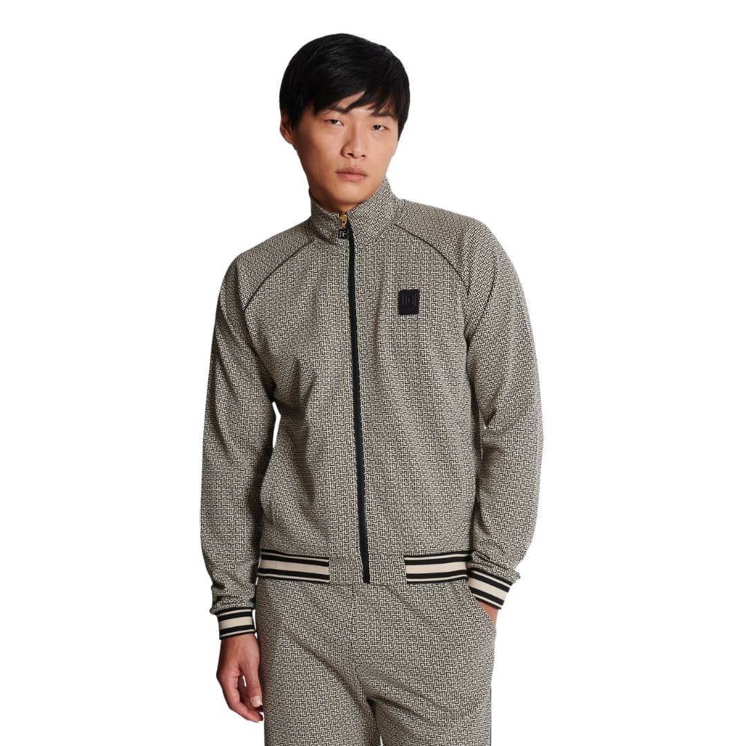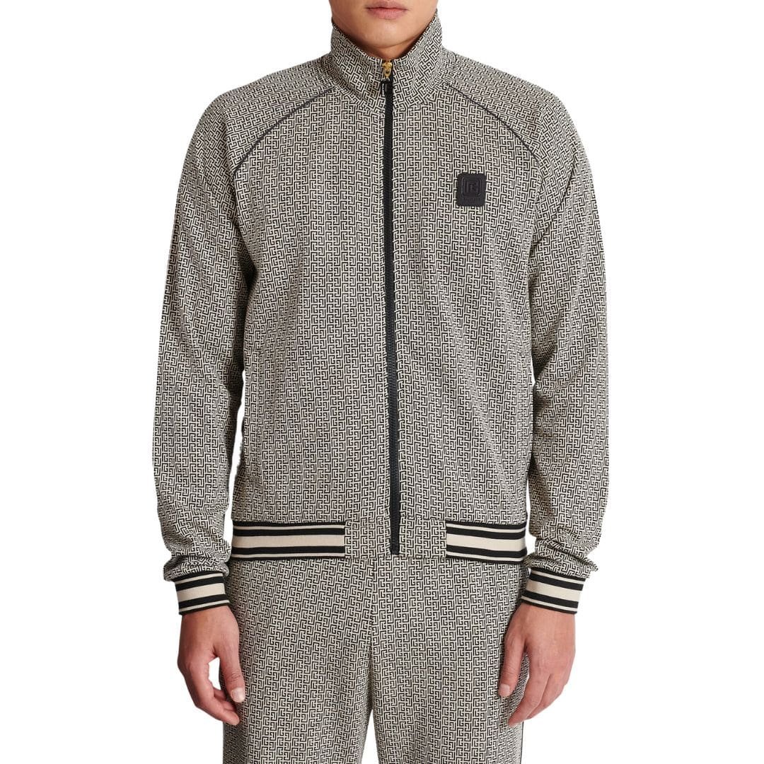 BALMAIN MINI MONOGRAMMED JACQUARD ZIPPED JACKET