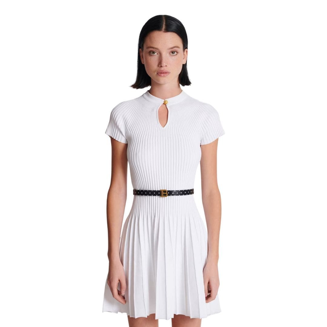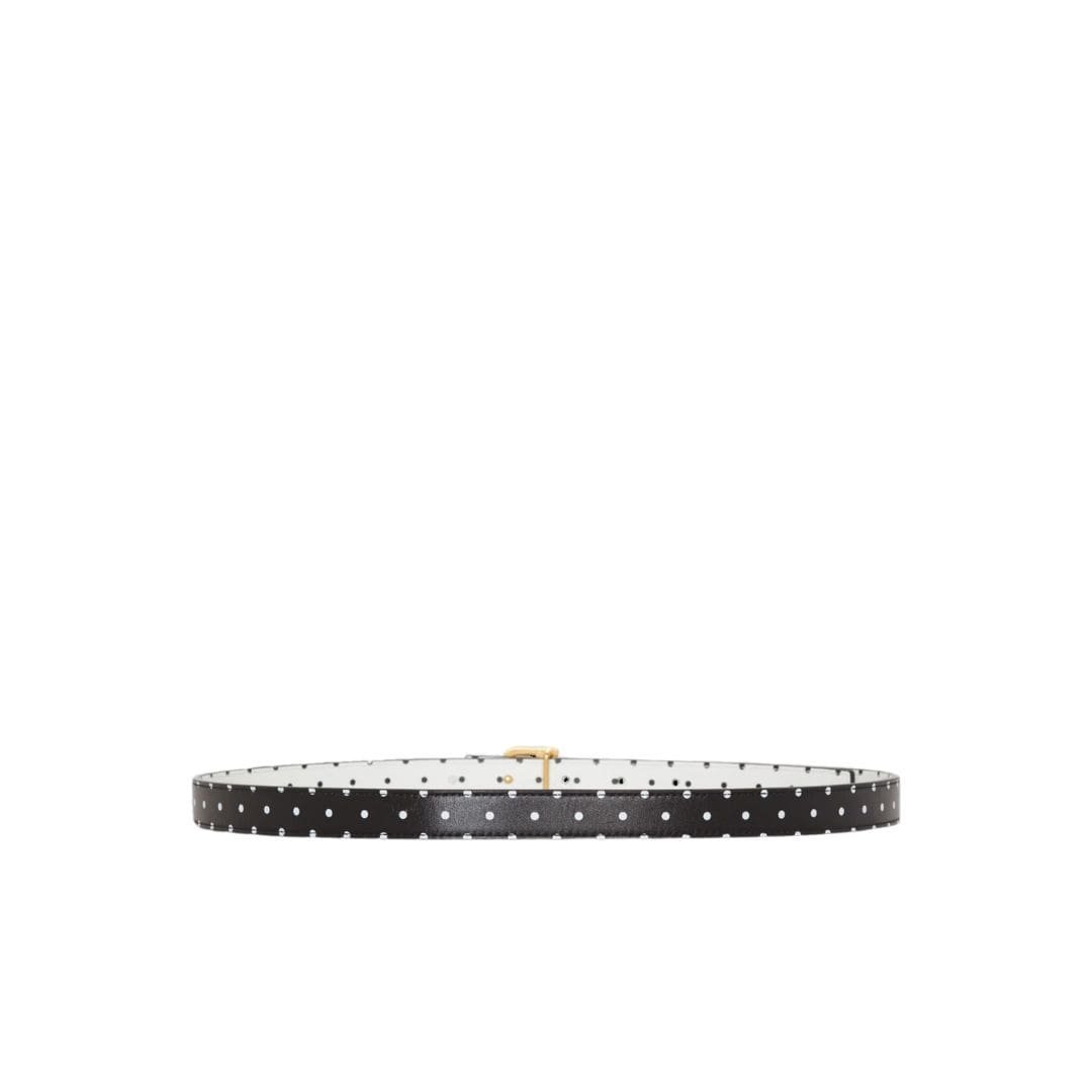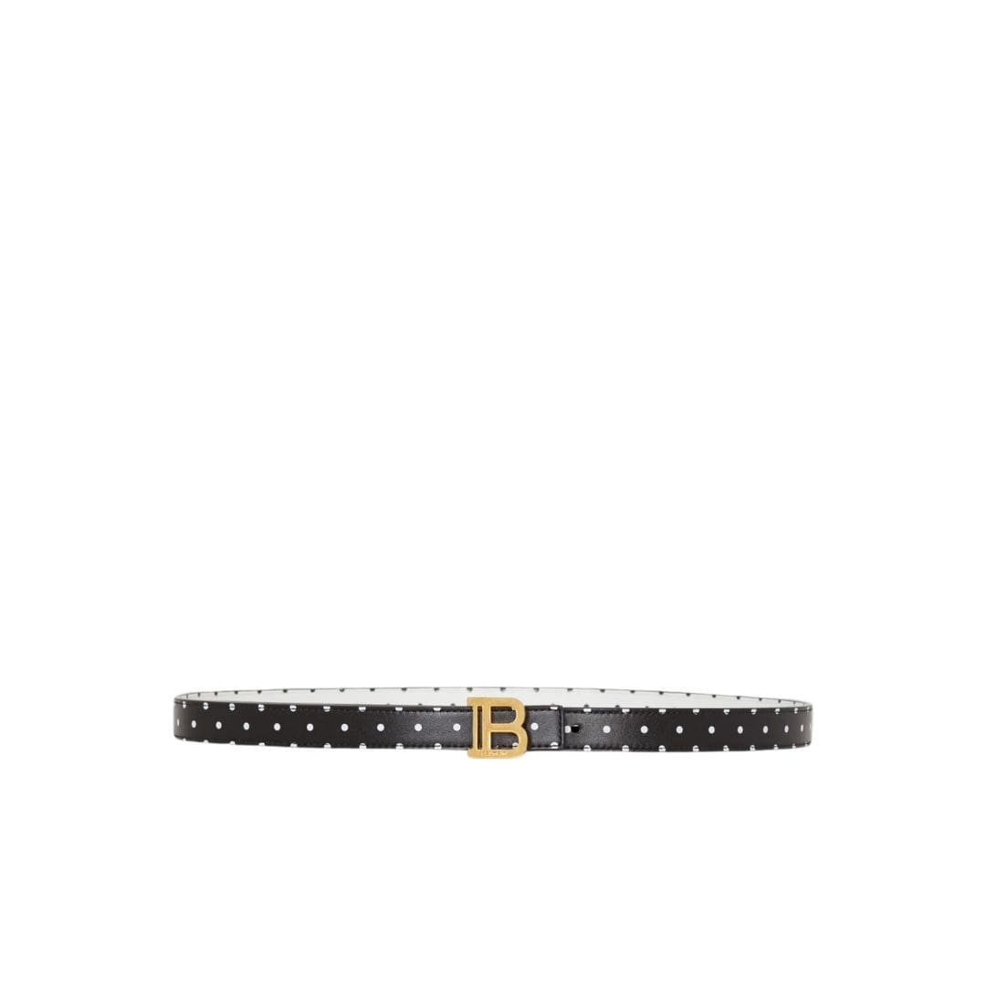 Perfect for both casual and formal occasions, this belt effortlessly complements a wide range of outfits. Pair it with tailored trousers or denim for a refined yet relaxed look, or cinch it around a flowing dress or oversized shirt for a touch of effortless chic. The reversible nature of the belt allows for endless styling possibilities, making it a versatile addition to any wardrobe.BALMAIN THIN REVERSIBLE CALFSKIN B-BALT WITH POLKA PRINT IN BLACK