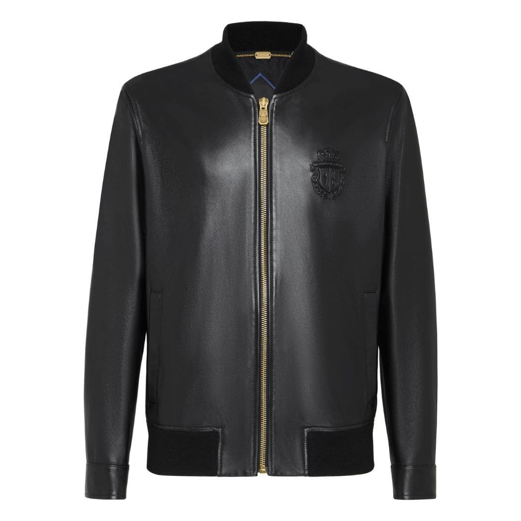 BILLIONAIRE LEATHER BOMBER EMBOSSED CREST