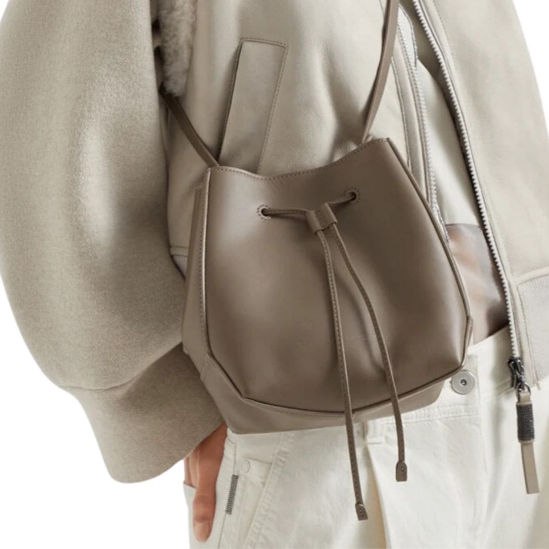 BRUNELLO CUCINELLI CALFSKIN BUCKET BAG WITH MONILI