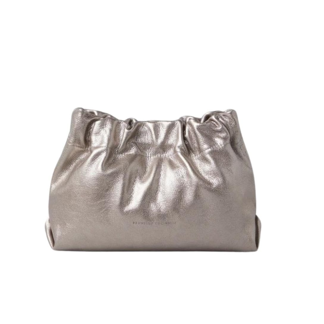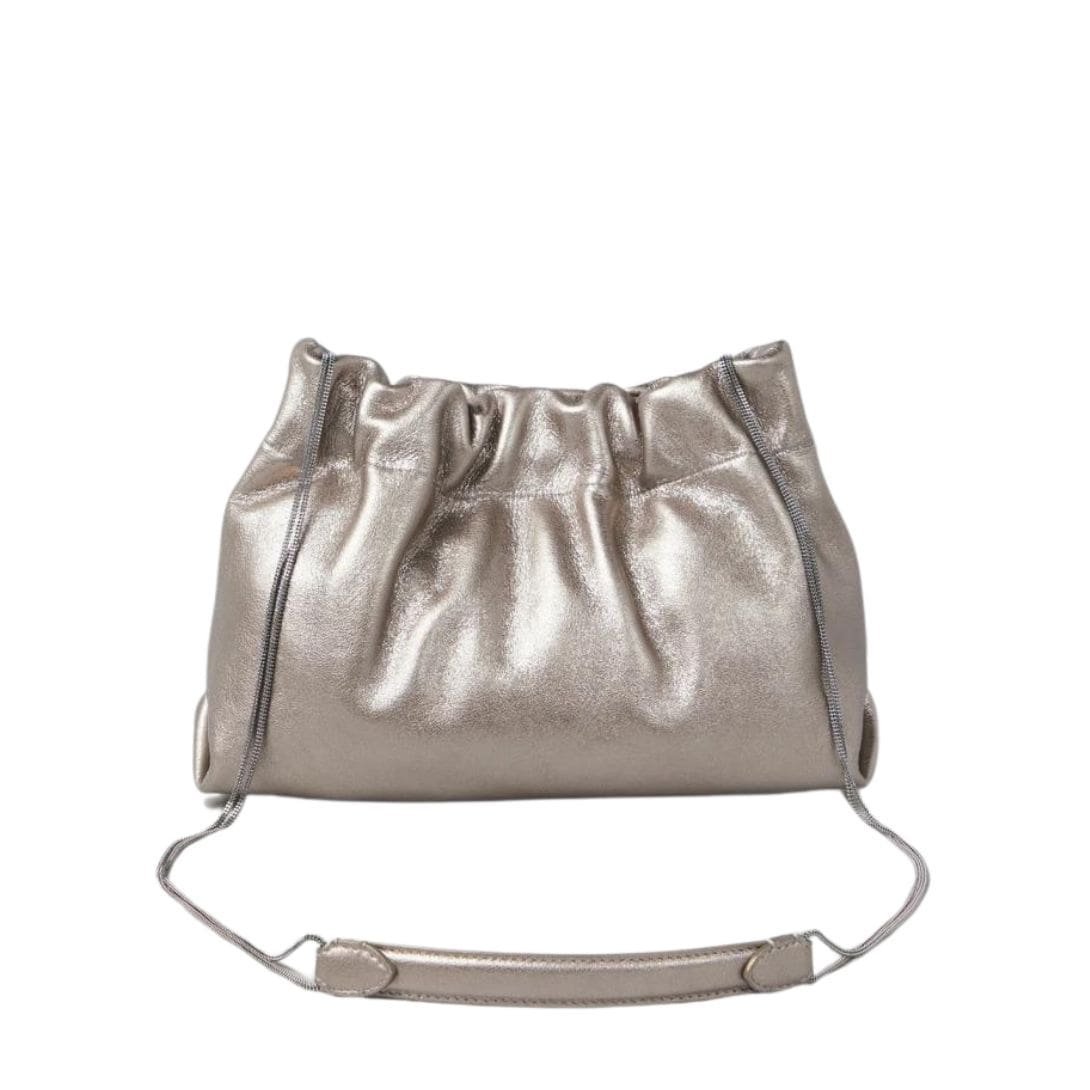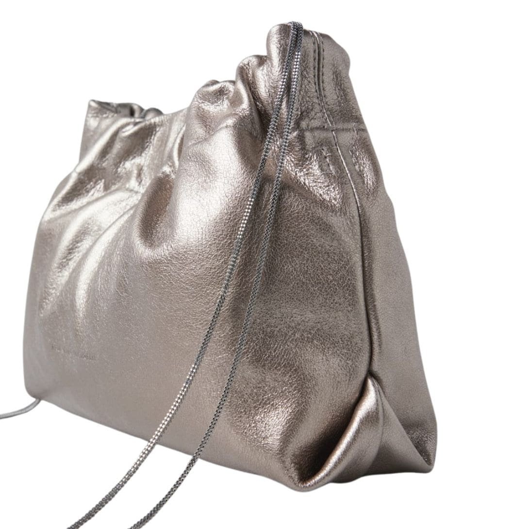 BRUNELLO CUCINELLI LAMÉ CALFSKIN SOFT BAG WITH PRECIOUS CHAIN