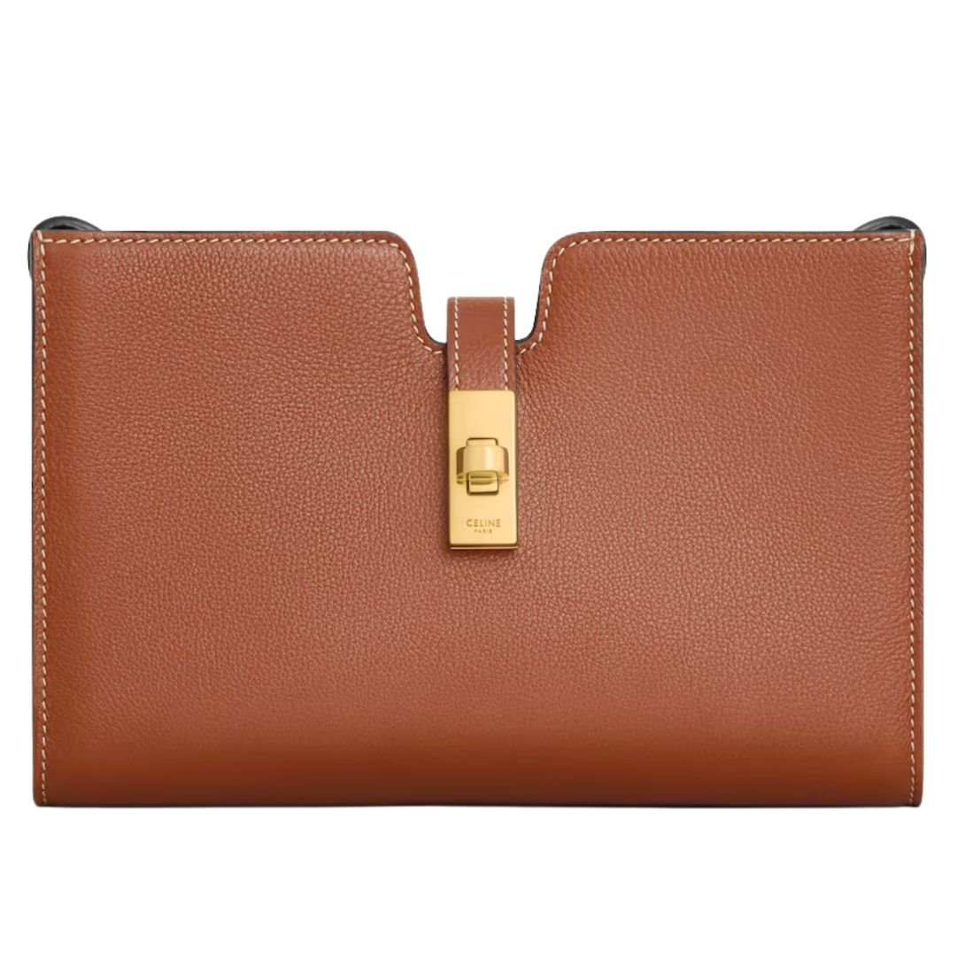 CELINE 16 STRAP POCHETTE IN SUPPLE GRAINED CALFSKIN TAN