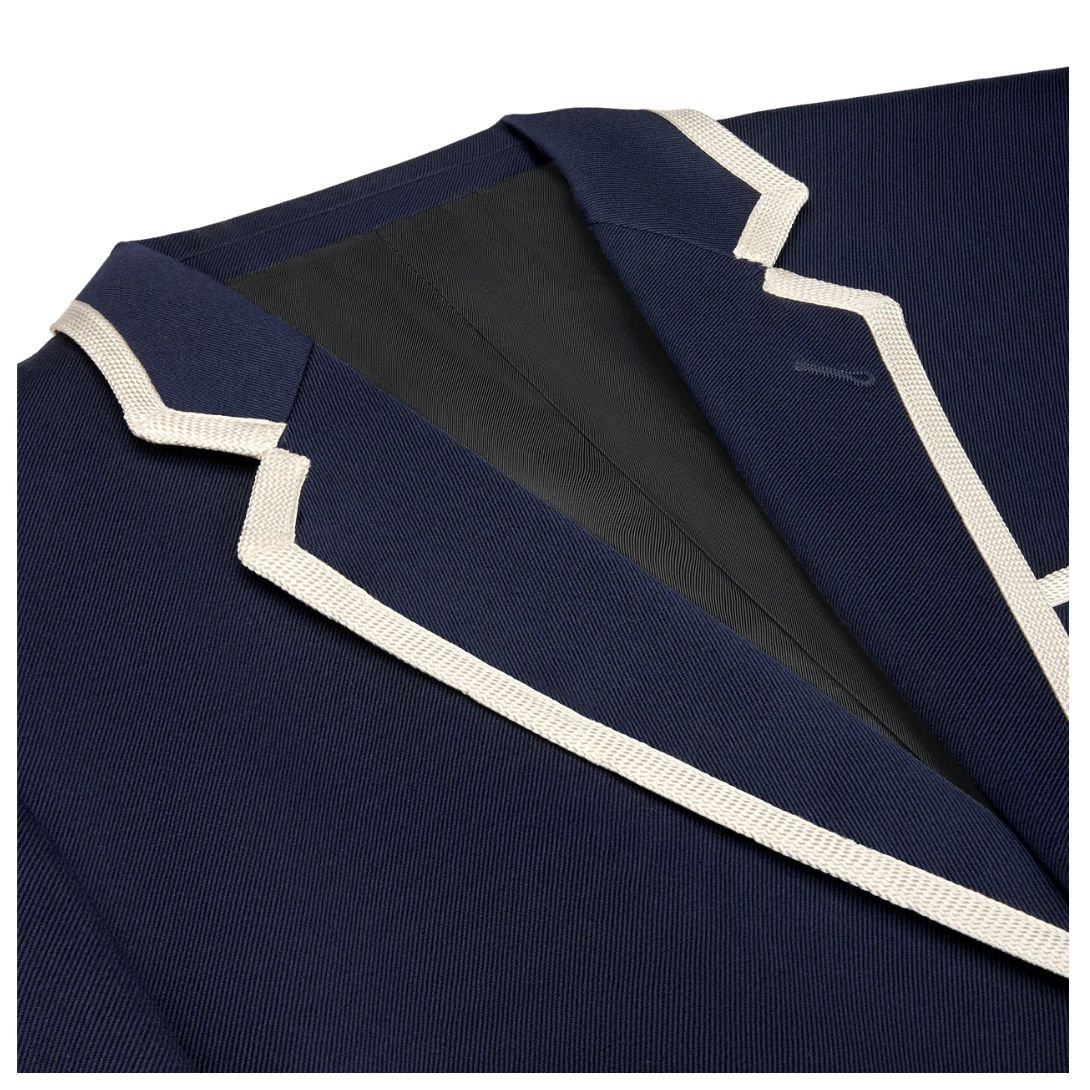 The interior is lined with a premium blend of 52% viscose and 48% cupro, providing a smooth and lightweight feel against the skin. This combination enhances comfort while ensuring a polished structure.