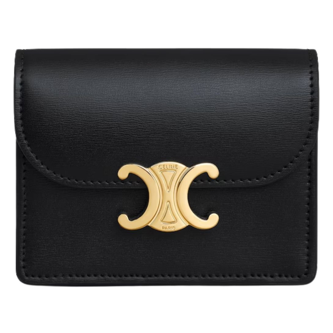 CELINE BUSINESS CARD HOLDER TRIOMPHE IN SHINY CALFSKIN BLACK