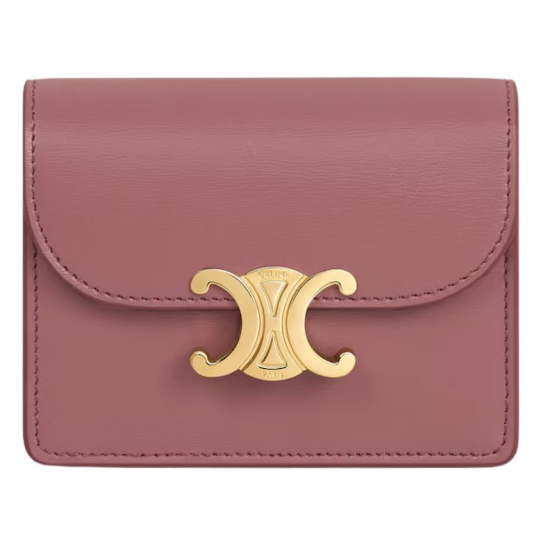 CELINE BUSINESS CARD HOLDER TRIOMPHE IN SHINY CALFSKIN VINTAGE ROSE
