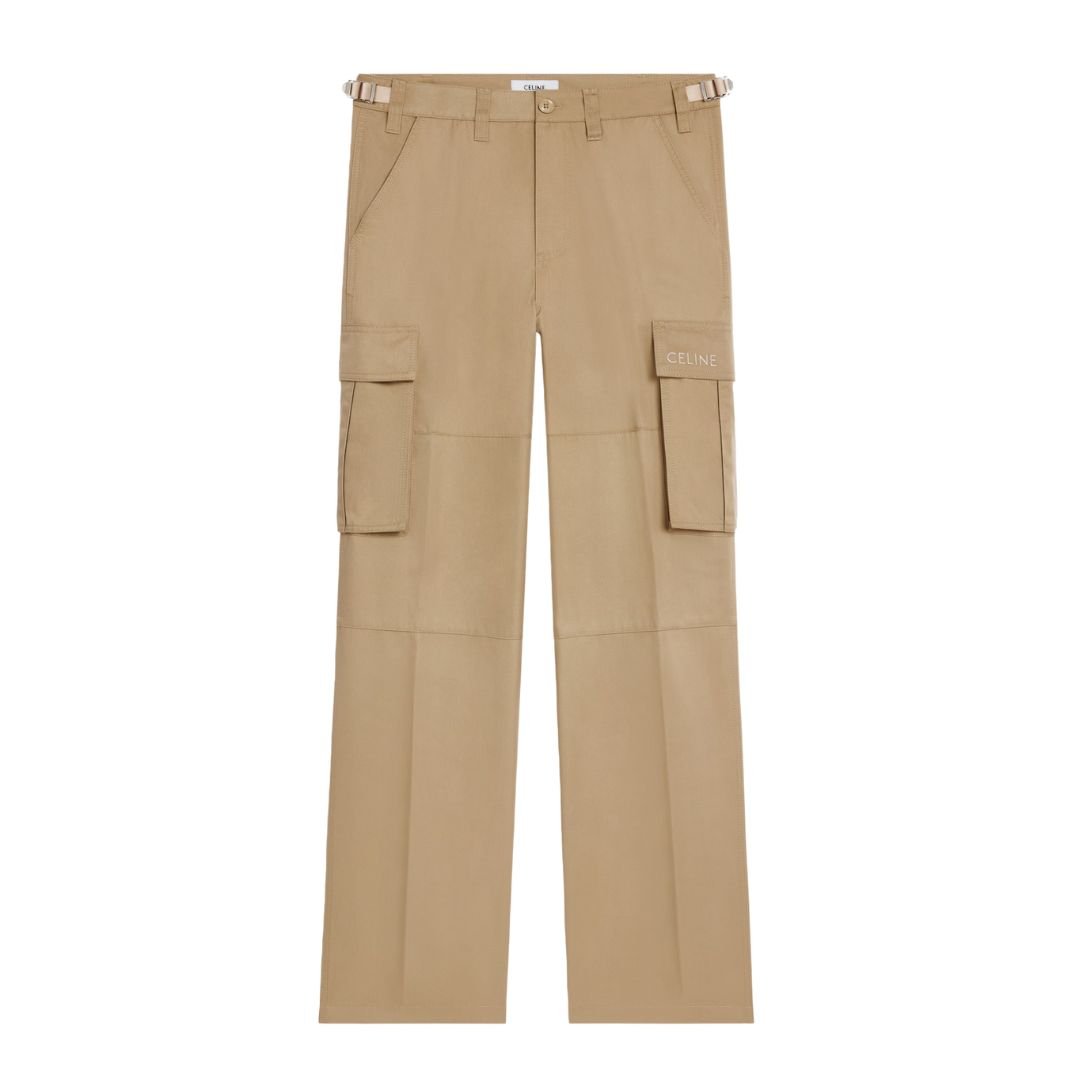 Equipped with two side pockets, these pants offer practical storage for daily essentials. The CELINE embroidery on the side pockets adds a subtle yet refined touch. Additionally, the design includes two flap pockets on the back and two patch pockets with flaps on the side of the leg, secured with CELINE snap buttons for added utility and elegance.