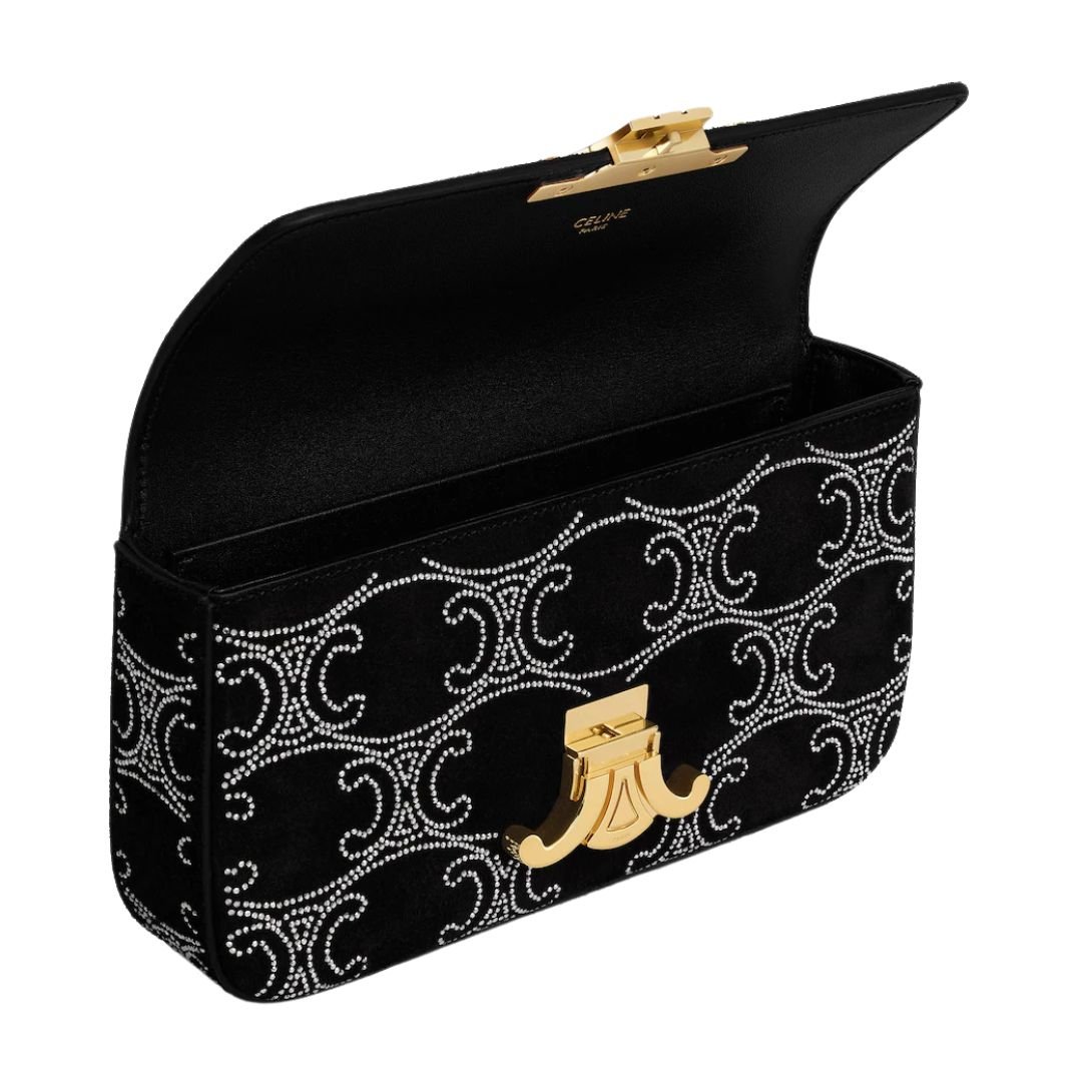 CELINE CHAIN SHOULDER BAG CLAUDE IN SUEDE CALFSKIN WITH TRIOMPHE STRASS