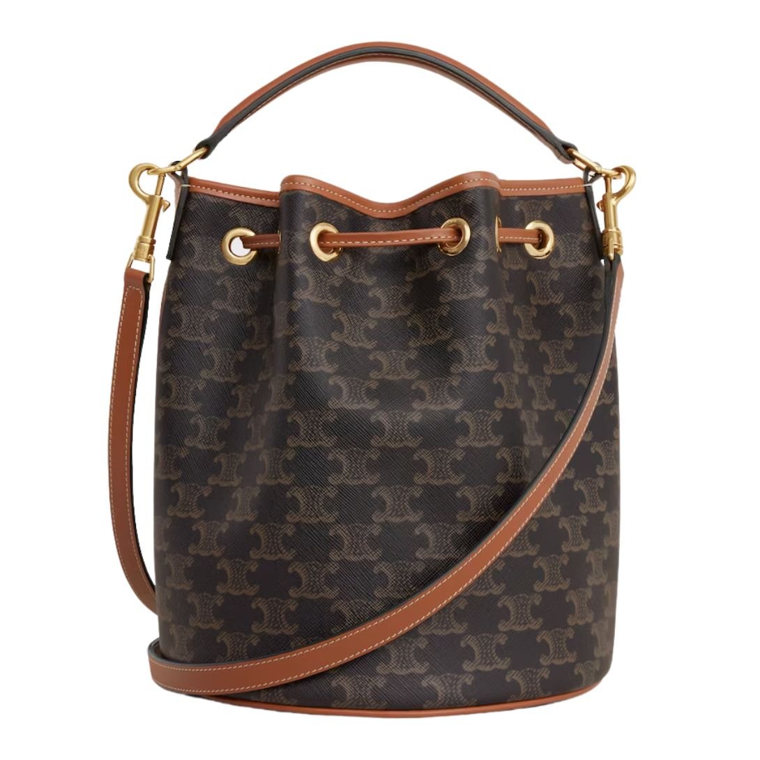 CELINE CLARA BAG IN TRIOMPHE CANVAS AND CALFSKIN TAN