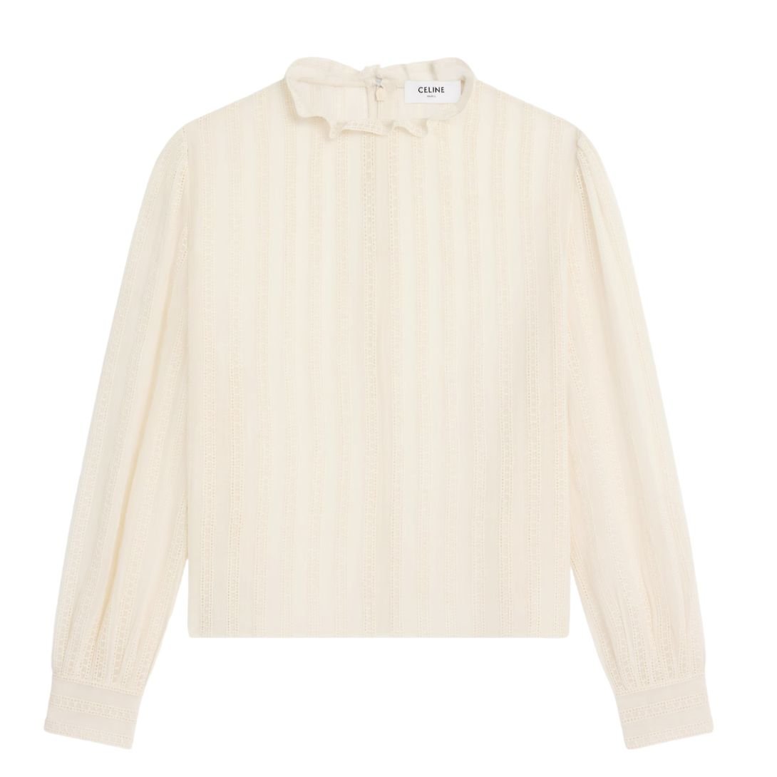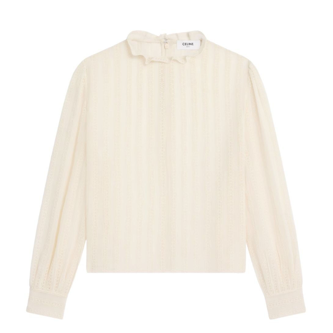CELINE CROPPED BLOUSE IN MUSLIN COTTON AND WOOL