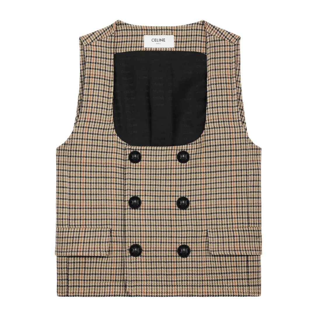 CELINE DOUBLE BREASTED VEST IN HOUNDSTOOTH WOOL
