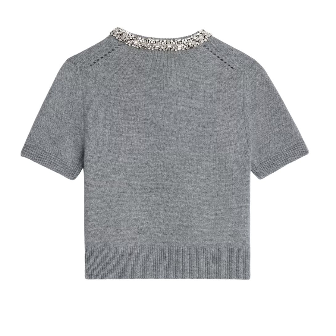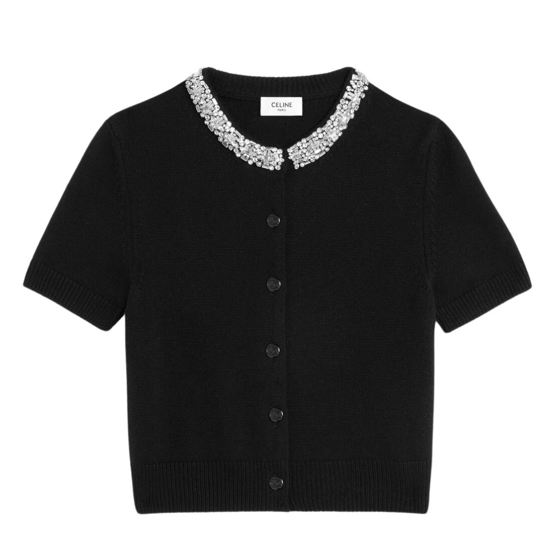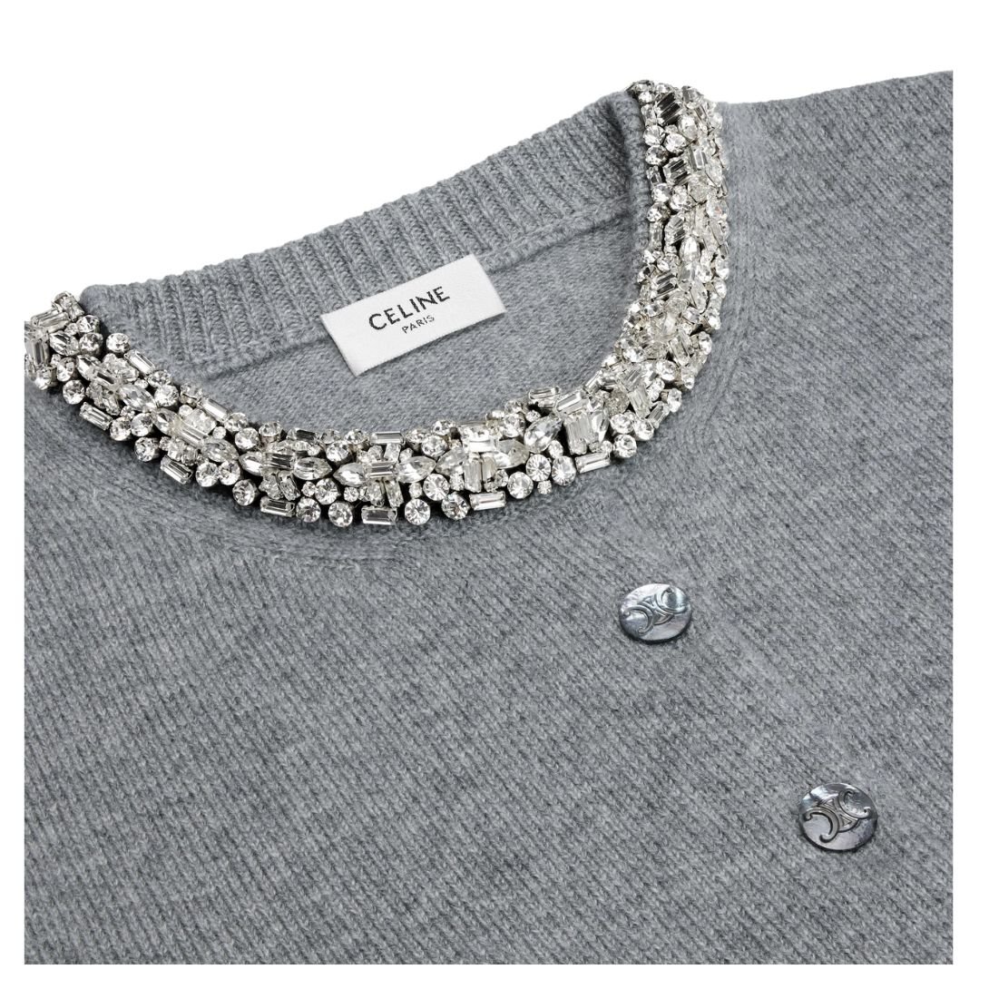 CELINE EMBROIDERED CROPPED CARDIGAN IN CASHMERE MEDIUM GREY