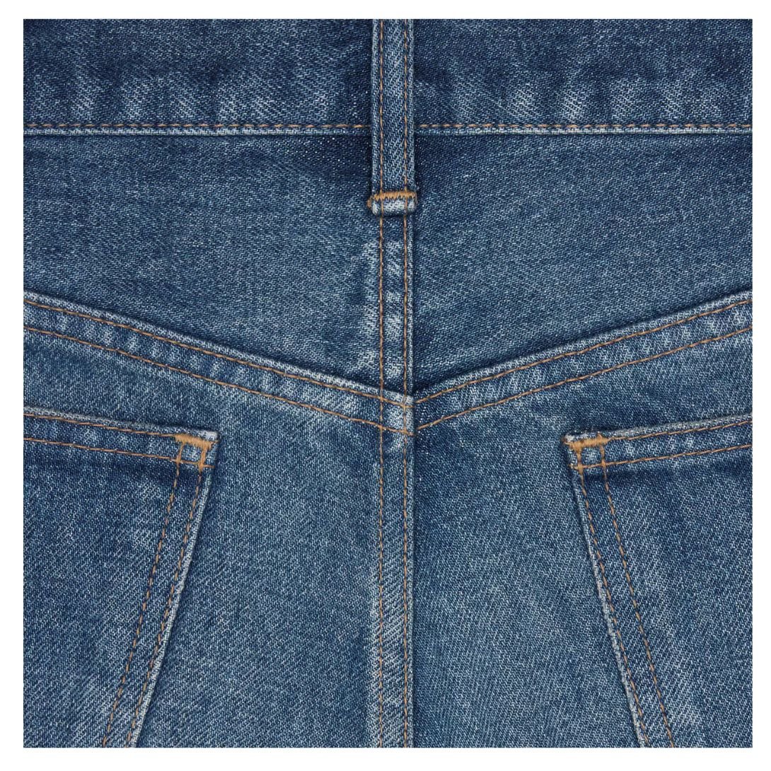 The dark union wash gives these jeans a rich, deep hue, making them a sophisticated yet casual choice. The straight-leg cut delivers a sleek, elongated look that pairs effortlessly with any outfit. Featuring a five-pocket design, these jeans combine practicality with timeless style. Rivets on the front pockets enhance durability, while the patch at the back on the waistband and Celine jeans-engraved zip and button reflect the brand’s signature craftsmanship.