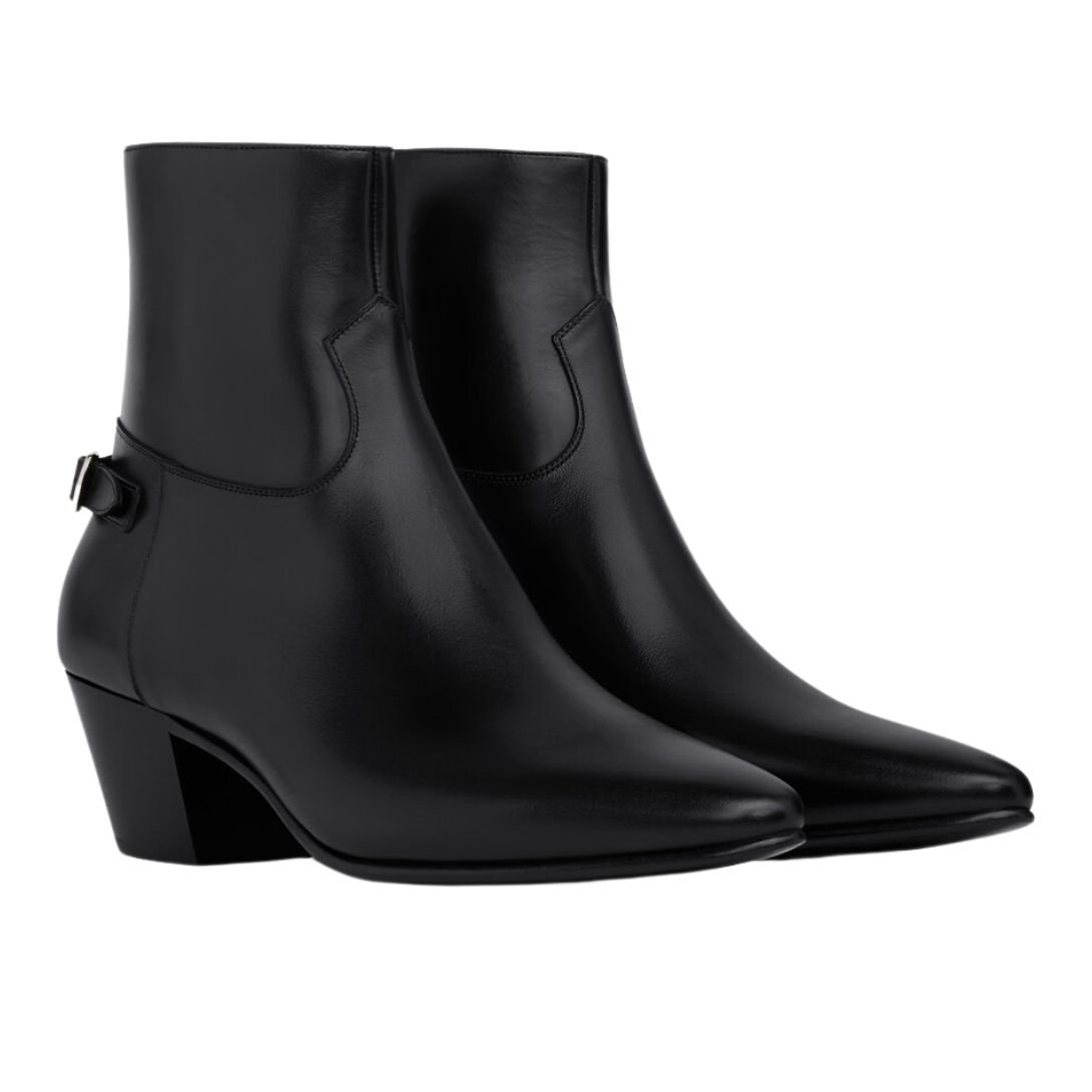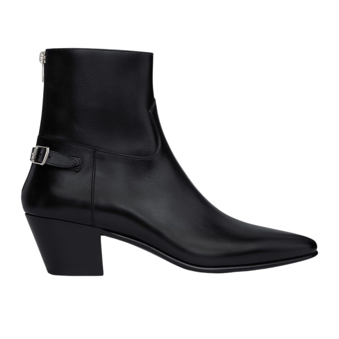 CELINE JACNO BACK BUCKLE ZIPPED BOOT IN SHINY CALFSKIN