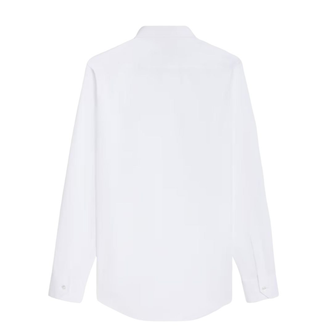 The drugstore collar, reinforced with collar stays, ensures a structured and polished look, maintaining its crisp shape.
