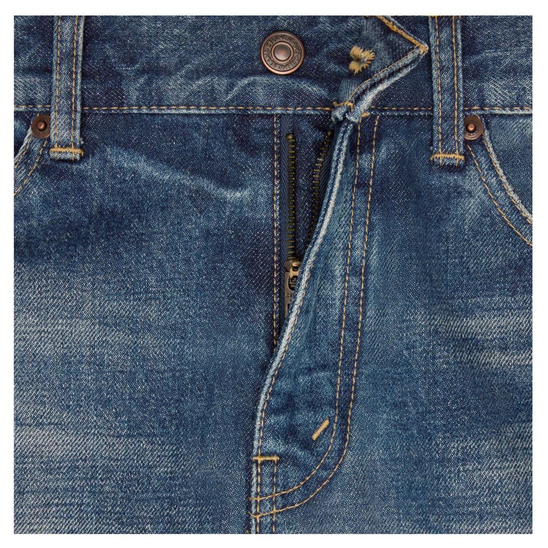 With a traditional five-pocket construction, these jeans balance style and practicality. Rivets on the front pockets reinforce durability while maintaining a classic denim look.
