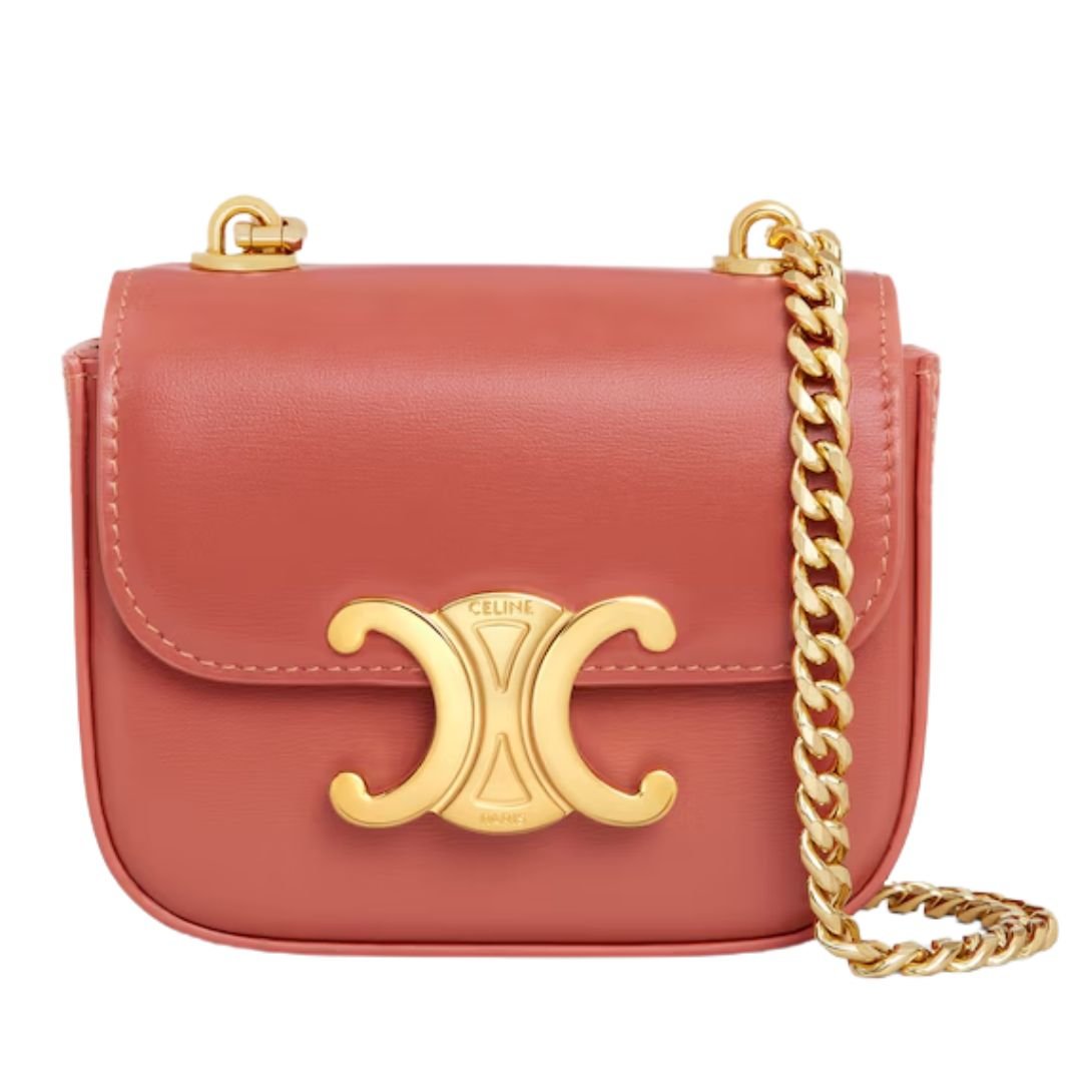 CELINE MINI CHAIN CLAUDE IN SHINY CALFSKIN RED CANYON