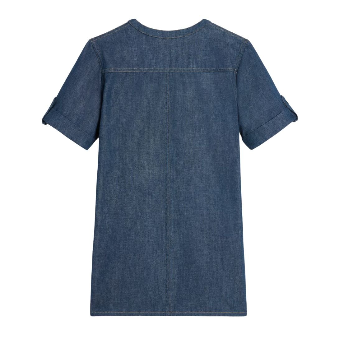 Crafted from 100% cotton, this mini dress offers a breathable and lightweight feel, perfect for all-day wear. Designed with a classic fit, it drapes beautifully on the body while maintaining a structured silhouette. The dark ocean wash enhances its timeless appeal, making it a versatile wardrobe essential.