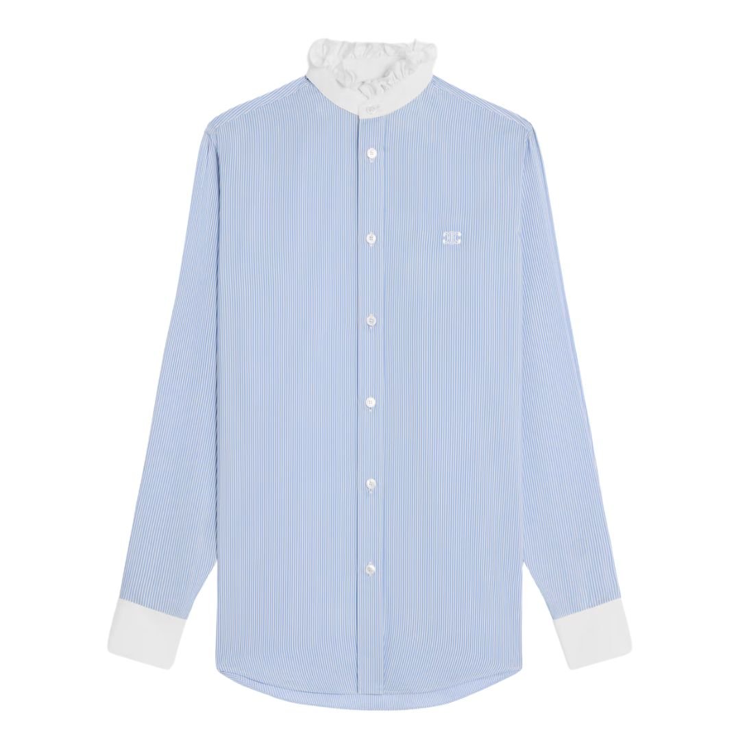 CELINE ROMY FRILLED SHIRT IN STRIPED SILK