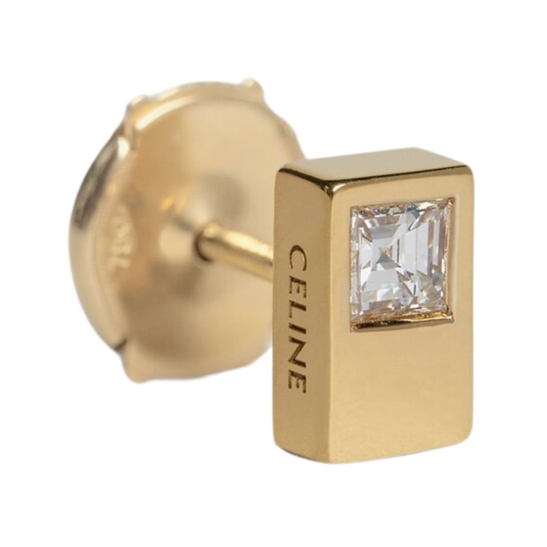 CELINE SENTIMENTAL DOUBLE SQUARE STUD IN YELLOW GOLD AND DIAMOND