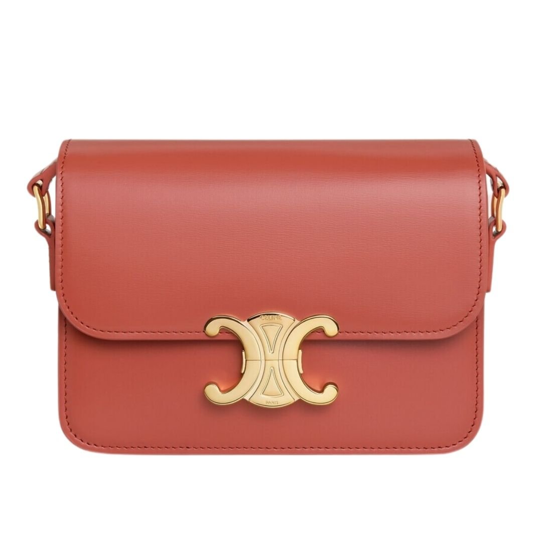 CELINE TEEN TRIOMPHE BAG IN SHINY CALFSKIN RED CANYON
