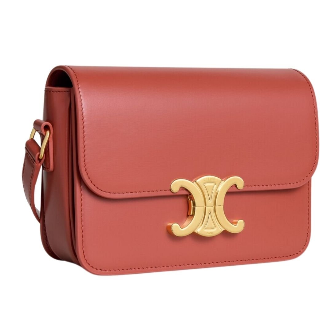CELINE TEEN TRIOMPHE BAG IN SHINY CALFSKIN RED CANYON