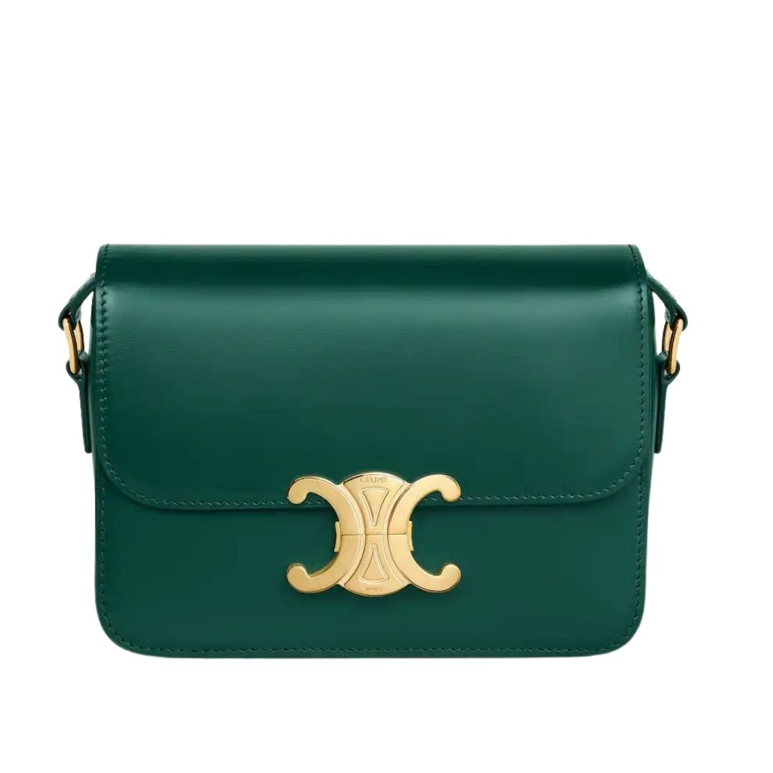 CELINE TEEN TRIOMPHE BAG IN SHINY CALFSKIN RACING GREEN