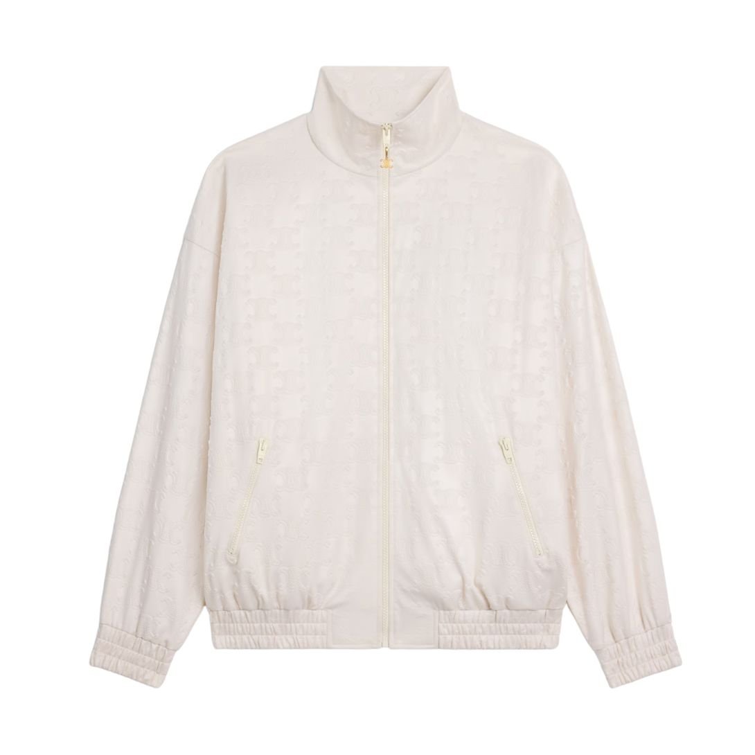 Featuring an all-over embossed Triomphe pattern, this jacket offers a refined, textured look that embodies Celine’s signature elegance.