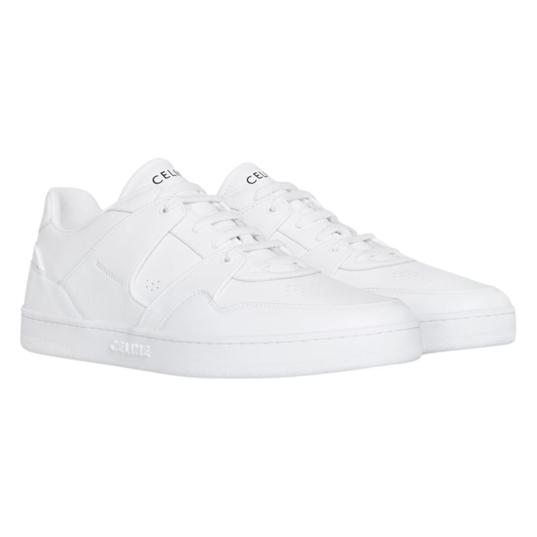 CELINE TRAINER CT 09 LOW LACE UP SNEAKER IN CALFSKIN AND MESH OPTIC WHITE-BEIGE