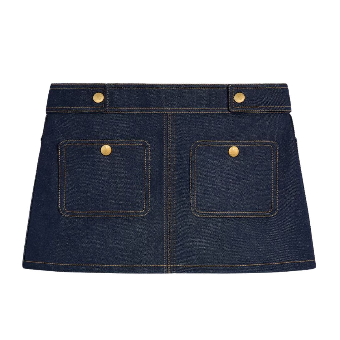 CELINE TRAPEZE MINI SKIRT IN RAW WASH DENIM
