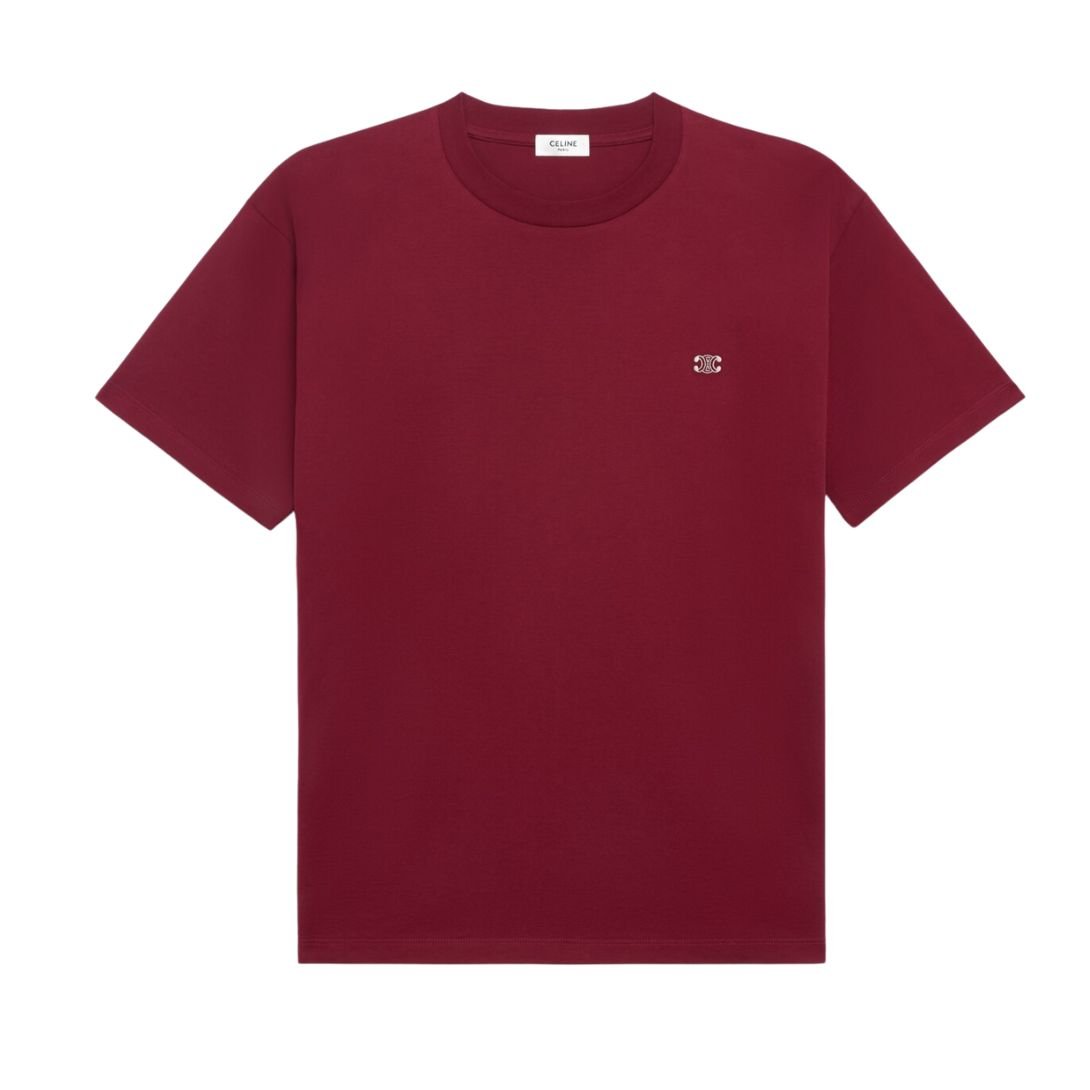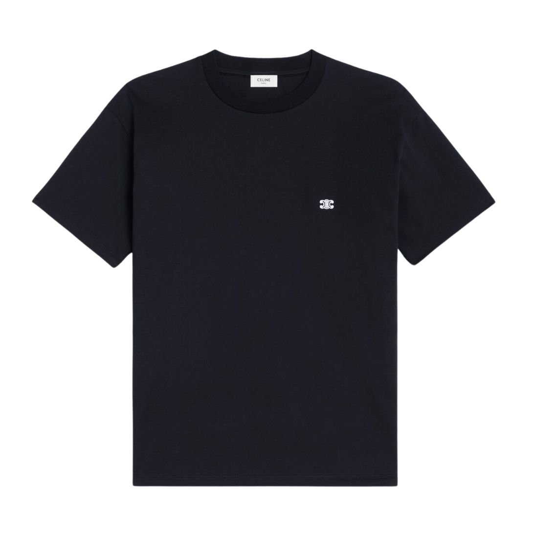 Featuring the iconic Triomphe embroidery, this t-shirt embodies Celine’s refined aesthetic. The crew neck provides a classic structure, while the ribbed trim on the collar ensures durability and a polished finish.
