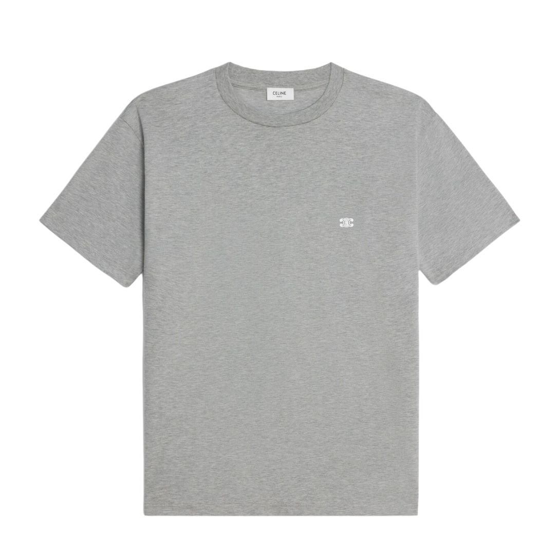 CELINE TRIOMPHE LOOSE T SHIRT IN COTTON JERSEY GREY MELANGE-OFF WHITE