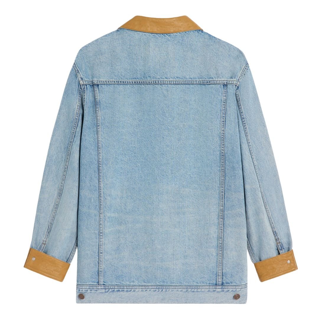 Crafted from 100% cotton with 100% lambskin leather details, this jacket combines classic denim with a touch of luxury. The blue eclipse wash enhances its vintage appeal, offering a timeless and effortlessly cool aesthetic.