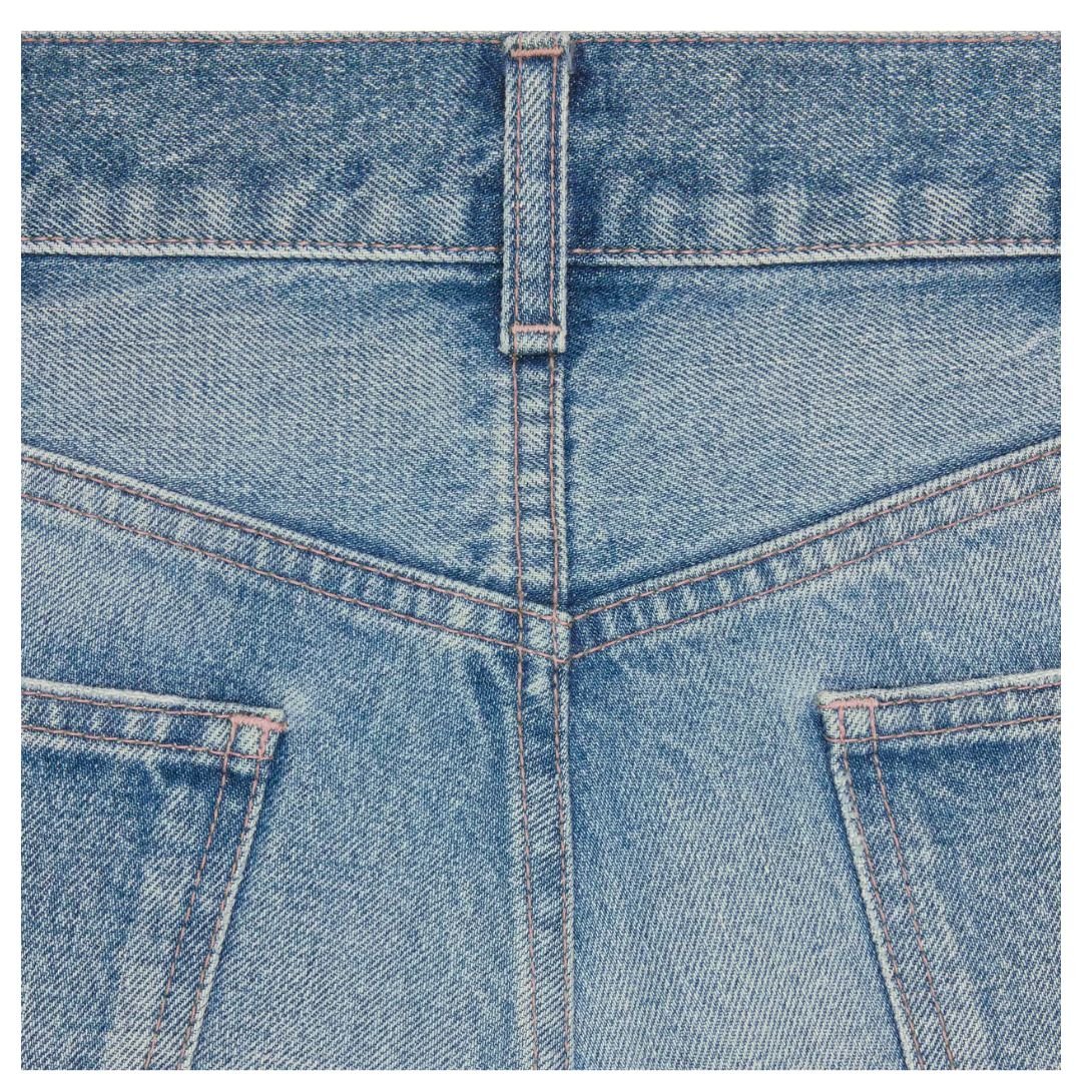 A classic five-pocket design provides practicality and timeless style, with rivets on the front pockets enhancing durability and reinforcing the rugged denim look.