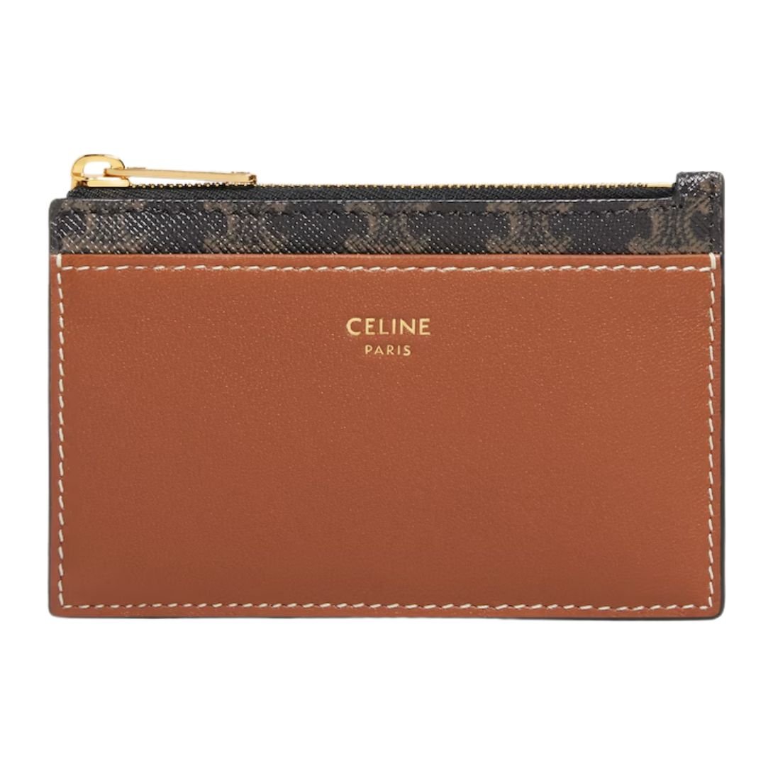 CELINE ZIPPED CARD HOLDER IN TRIOMPHE CANVAS AND LAMBSKIN BLACK