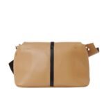 As your fingers trace the supple curves of the bag, you’ll be drawn to the artful composition of its design. Curvy lines and wrapped details intertwine seamlessly, creating a distinctive aesthetic that exudes an evening allure. A contrast leather band adds depth and dimension, further enhancing the bag’s visual appeal and lending it a sense of understated sophistication.