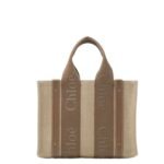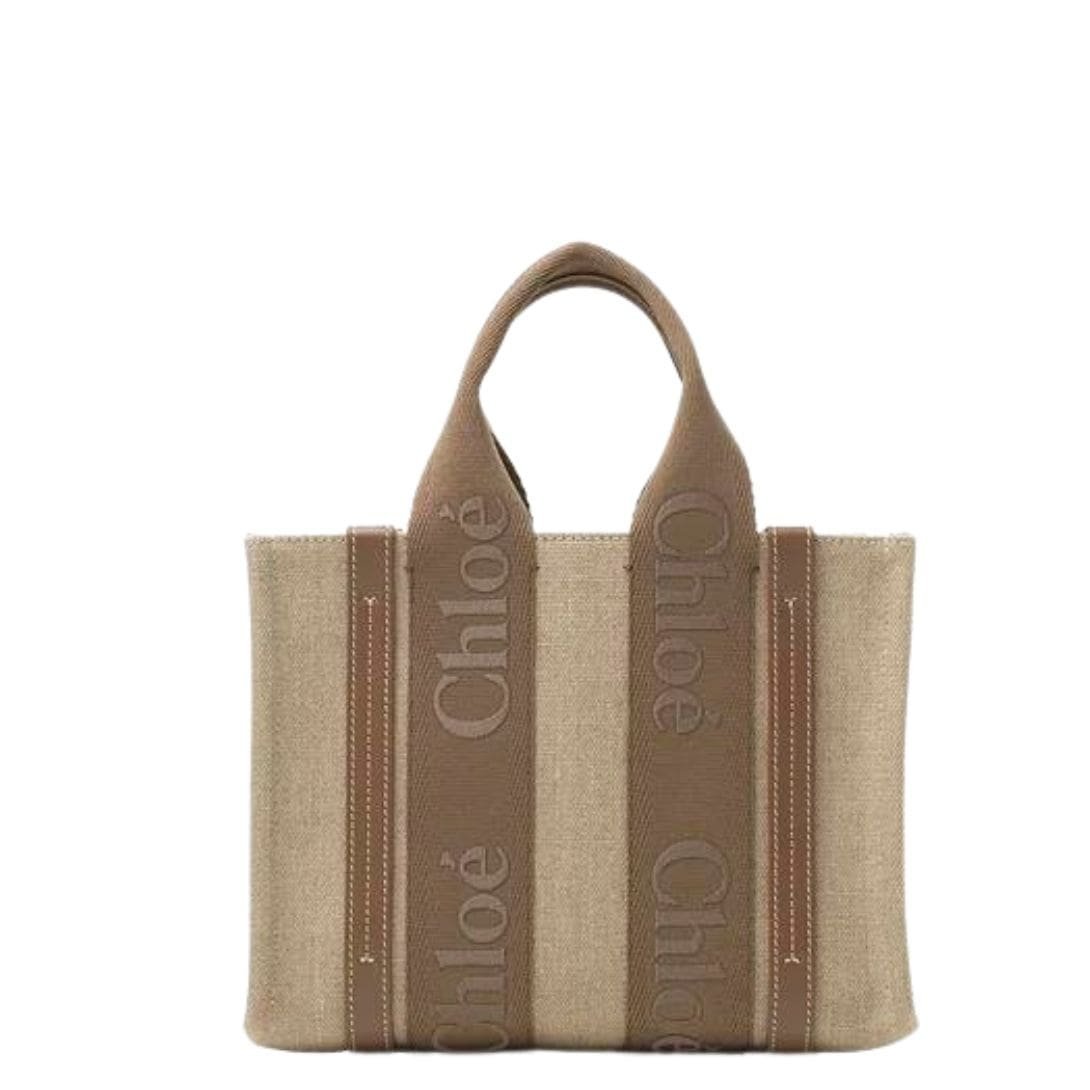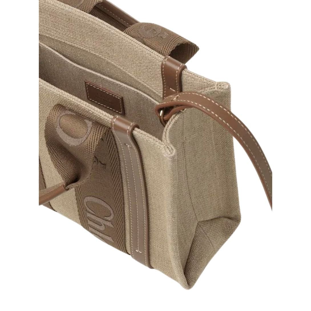 CHLOE SMALL WOODY TOTE BAG IN LINEN DARK NUT