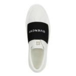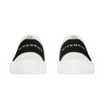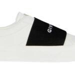 The upper of the sneakers is made from supple leather, offering both durability and comfort. The leather is meticulously finished to provide a smooth, polished look that enhances the shoe’s overall aesthetic. The classic white color of the leather creates a clean, versatile base that easily complements a wide range of wardrobe choices. For added refinement, the sneakers are adorned with a distinctive Givenchy strap that wraps around the ankle. This strap, embossed with the Givenchy logo, not only serves as a fashion statement but also provides additional support and security, ensuring a snug fit.