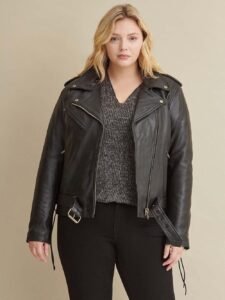 Belted leather waist.