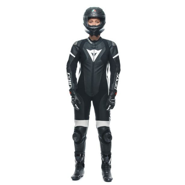 Crafted from premium Tutu cowhide, this suit provides maximum protection derived from direct track experience. It features composite protectors on the shoulders, elbows, and knees, along with Pro-Shape 2.0 certified soft protectors on the sides and interchangeable aluminum plates on the shoulders—a hallmark of Dainese innovation.