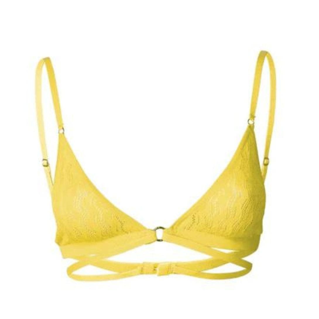 The Dodo Bar or Amanda Bra’ is fashioned from pointelle knit, featuring triangle cups and adjustable spaghetti straps, complete with a back hook-and-eye closure.