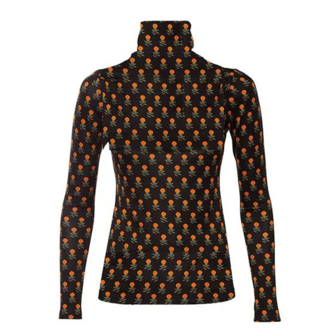 The Dodo Bar Or Bradley Turtleneck’ is crafted from a blend of 96% viscose and 4% elastane, featuring a tight fit with a turtleneck and floral print details.