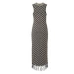 The Dodo Bar OR Chen Dress’ is meticulously crafted from geometric jacquard knit, featuring a close fit across the shoulders and neck, with fringed detailing at the bottom.